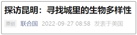 在第77届联大举行期间,媒体专区展出了一系列从不同国家采集的有关可持续发展目标的行动故事。今天,我们为您播出中国云南广播电视台制作的一期关于如何结合城市解决方案以应对生物多样性损失的节目。