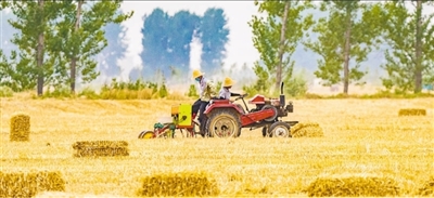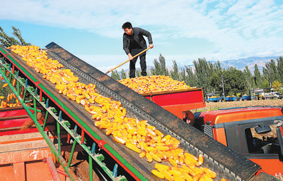 甘肃省张掖市甘州区上秦镇东王堡村,村民正将丰收的玉米交售制种企业。杨永伟摄(人民视觉)