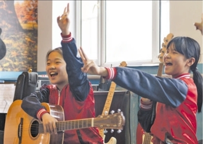 黑龙江省安达市任民镇中心小学有一个“村里的孩儿”音乐班。图为孩子们在进行乐队排练。
