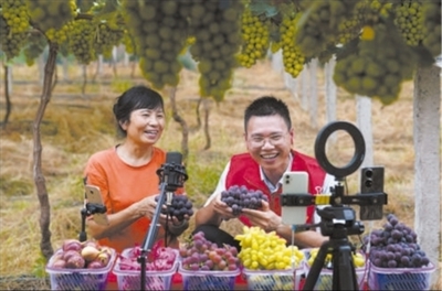 江西省新余高新区组织党员志愿者到田间地头开展助农直播带货活动。凌厚祥摄(人民视觉)