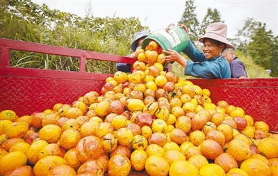 贵州省黔东南苗族侗族自治州丹寨县兴仁镇烧茶村,村民将收获的吊瓜装车。黄晓海摄(人民视觉)