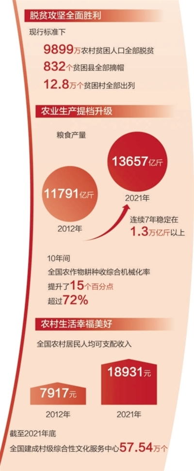 民族要复兴,乡村必振兴。党的十八大以来,以习近平同志为核心的党中央着眼于实现“两个一百年”奋斗目标,坚持把解决好“三农”问题作为全党工作的重中之重,打赢脱贫攻坚战,实施乡村振兴战略,推动农业农村取得历史性成就、发生历史性变革,为党和国家事业全面开创新局面提供了重要支撑。