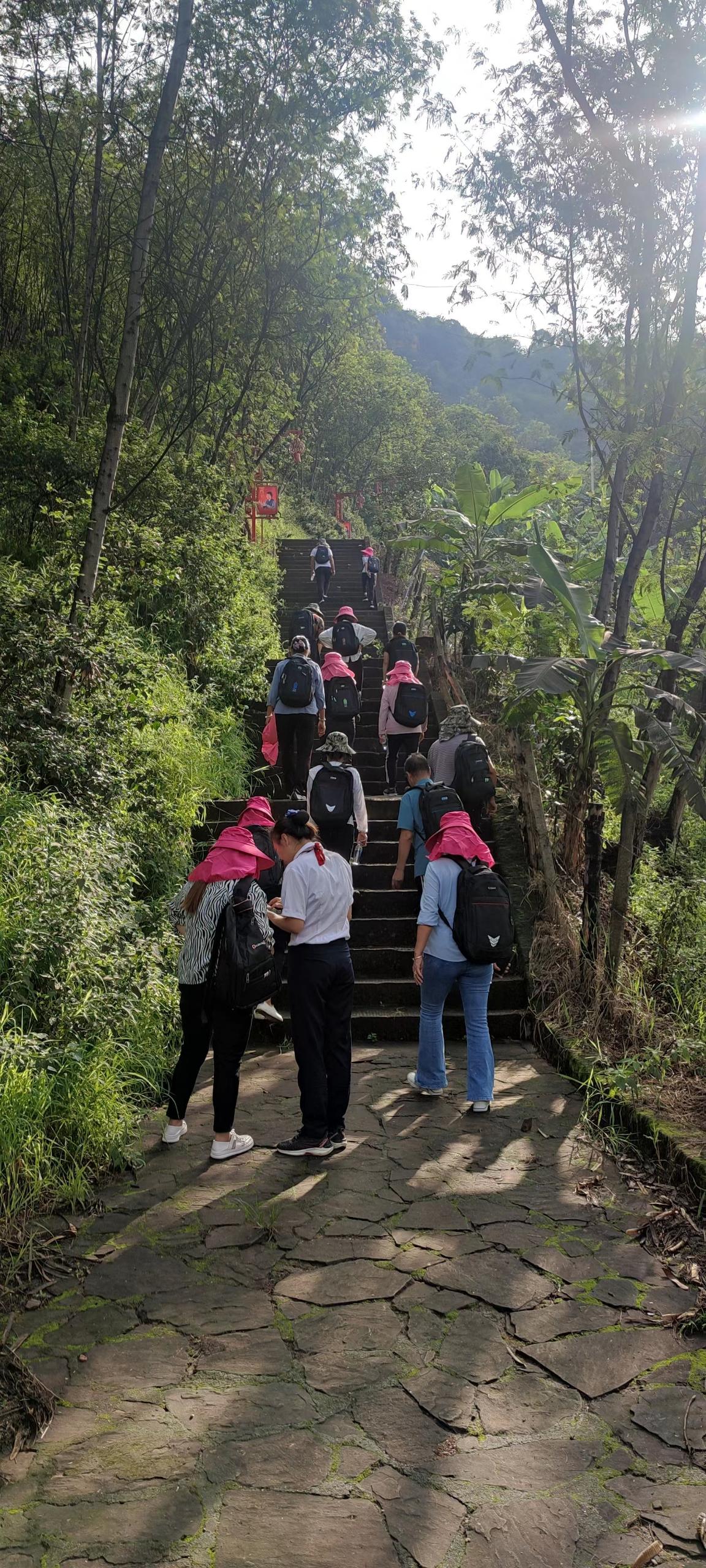 游戏结束后,现场工作人员组织大家领取登山装备,有序向山顶出发。