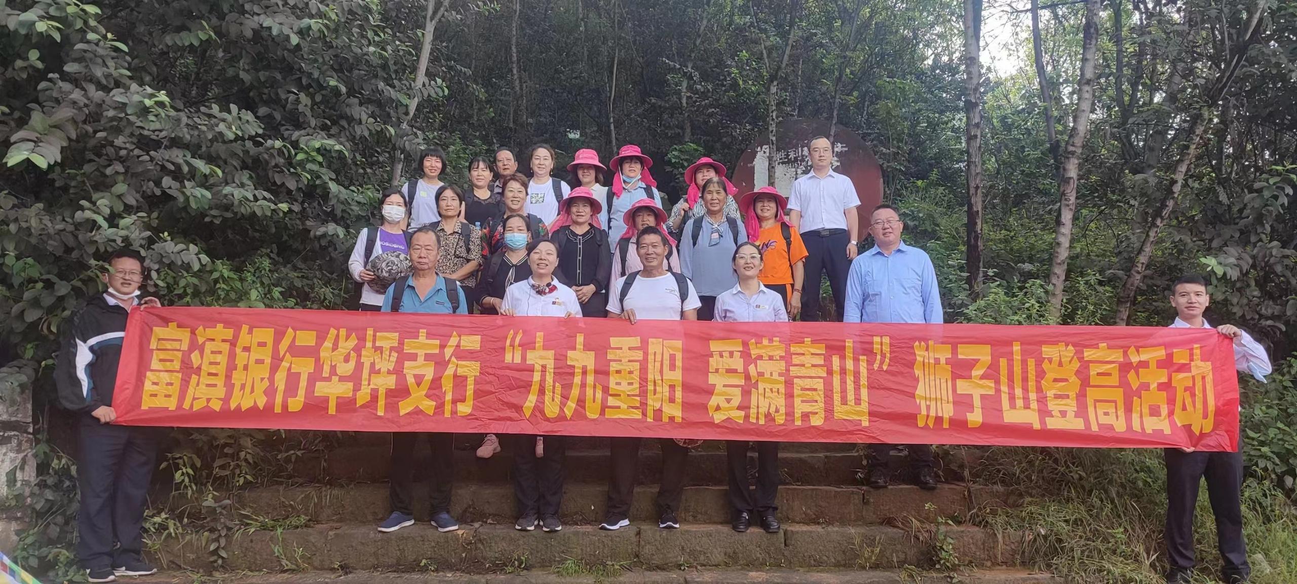 一年好景君须记,最是橙黄橘绿时。在全国第13个“敬老月”到来之际,富滇银行丽江华坪支行开展“九九重阳 爱满青山”狮子山登高活动,在弘扬敬老爱老传统美德的同时,把富滇银行贴心服务送到每一位老年人身边。