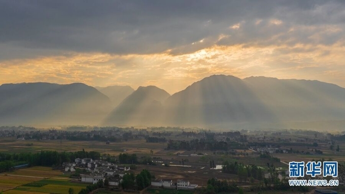 当丁达尔效应出现时,光便有了形状。近日,云南省大理白族自治州洱源县上空多次出现丁达尔效应,在摄影师的镜头下,一束束金色光柱从云层边缘直射下来,洒落到山岭、湖泊、田野之上,十分惊艳。