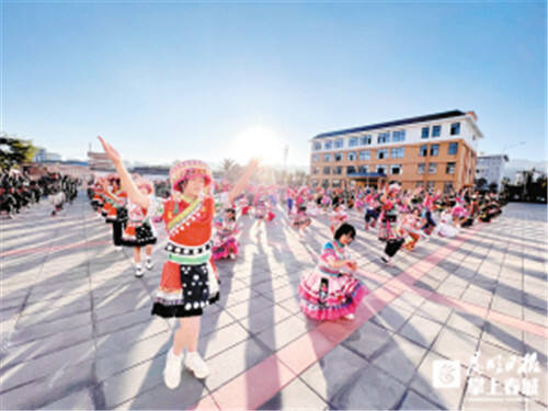 校长李志坚介绍,如何实践探索五育并举?非遗文化进校园是一个很好的举措。通过学习挝乐、秧佬鼓等非遗项目,既能丰富课间操、锻炼师生身体素质和传承非遗民族舞蹈,形成独特地方非遗特色课,又能增强师生对当地非物质文化遗产的自豪感、荣誉感,更好地传承、弘扬地方非物质文化遗产,深化学生爱祖国、爱家乡的情感。