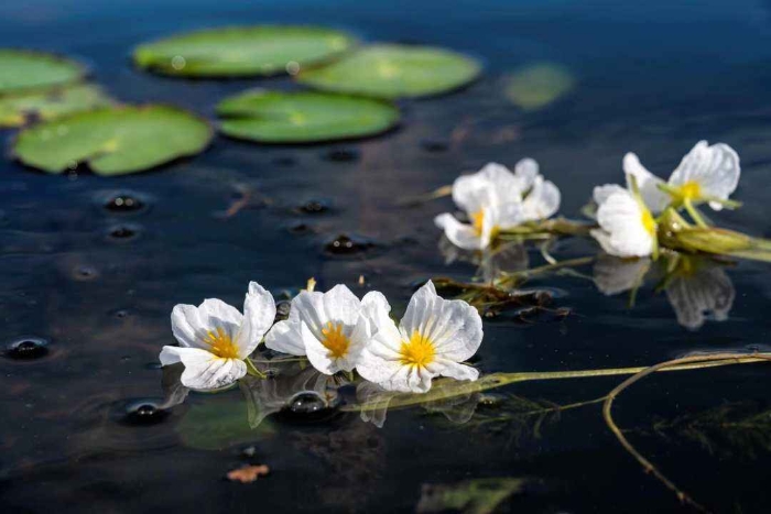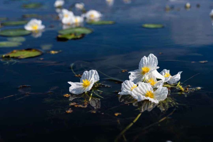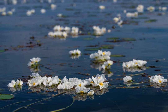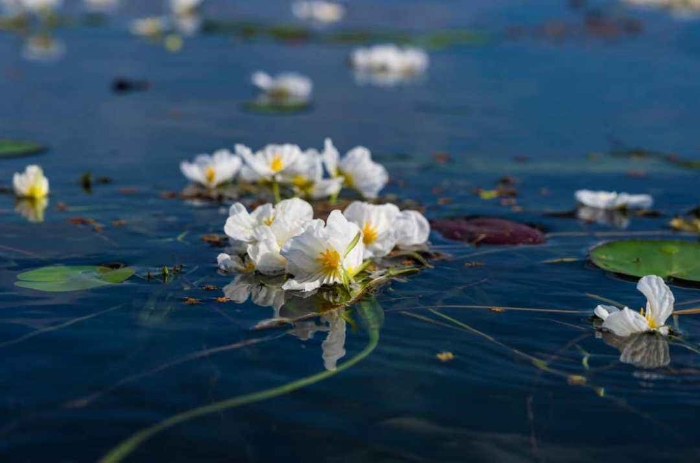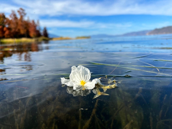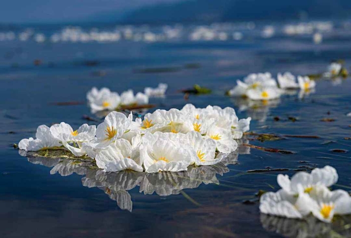 初冬时节,云南大理洱海里的海菜花仍然次第绽放,蓝天、碧水与白色的海菜花交相辉映,形成一道专属于洱海的初冬画卷。
