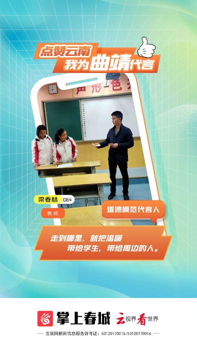 7月22日,2022年云南·昆明网络文化节系列活动“点赞云南 我为家乡代言”手机形象网络征集活动正式启动,面向全省征集典型人物故事,让一个个普通网民成为主角,登上封面为家乡代言,讲云南故事,展云南形象。 活动吸引了市民朋友的广泛关注,自启动以来持续火爆,每天均收到大量投稿,今天登上封面的就是由中共曲靖市委网信办推荐的“道德模范”代言人梁春林。