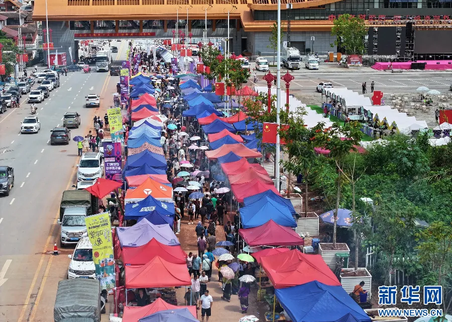 在比赛场地外,沿街绵延约1公里的“赶摆”集市热闹非凡。“赶摆”在傣语里是“赶集”的意思,集市上吃喝玩乐俱全,展现着当地的特色民族文化和地域风情。