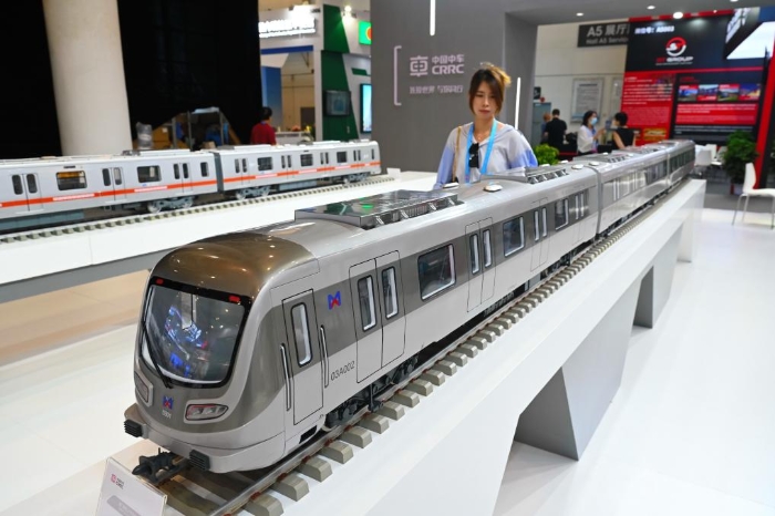 2024年9月10日,参观者在2024金砖国家新工业革命展的中国中车展位参观。新华社记者林善传摄