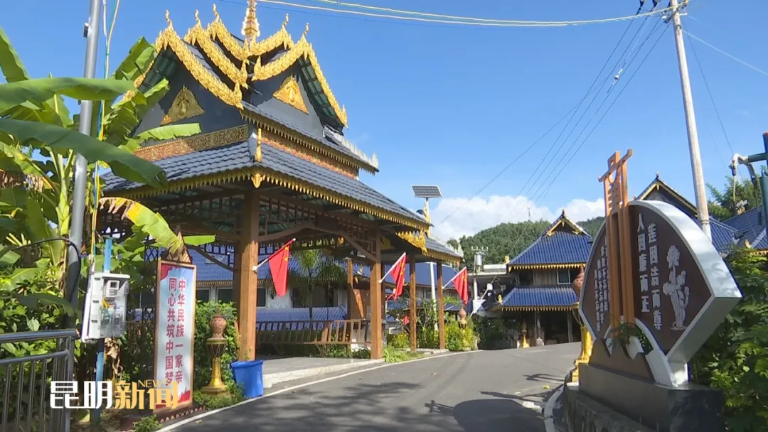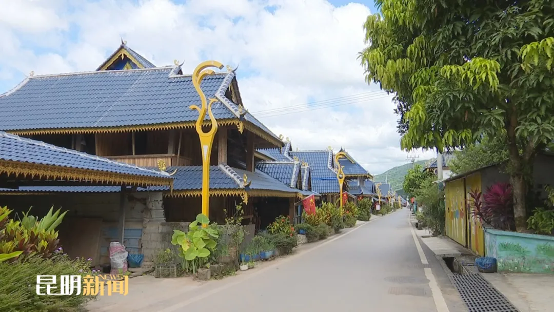 走进各村寨,是令人眼前一亮的寨门,是一栋栋覆盖着崭新蓝色琉璃瓦屋顶的吊脚楼,是焕然一新的村容村貌,是屋新路畅、花香林茂,是村民们幸福的笑脸。村旁,是疾驰而来的中老铁路列车,“火车经过我家乡”也为村寨带来了希望和梦想。