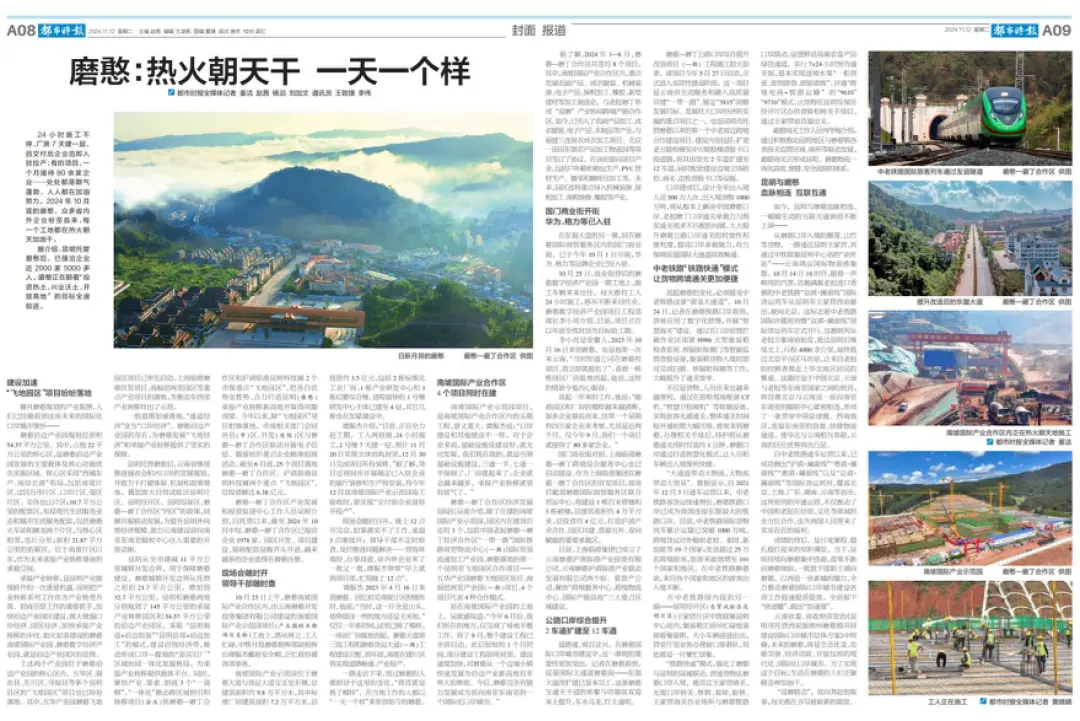 谭振杰介绍:“目前,正在全力赶工期,工人两班倒,24小时施工,2号楼7天建一层,预计11月20日实现主体结构封顶,12月30日完成项目所有装修。”据了解,项目还将同步开展确定已入驻企业的展厅装修和生产线安装,待今年12月底南坡国际产业示范园竣工验收时,要实现“交付即企业进驻并投产”。