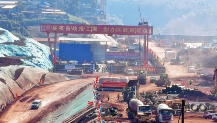 磨憨—磨丁公路口岸综合提升改造项目(一期)工程施工如火如荼,该项目今年5月27日启动,正式进入实质性建设阶段。这一项目是云南省主动服务和融入高质量共建“一带一路”、锚定“3815”战略发展目标、发展壮大口岸经济所实施的重点项目之一,也是昆明市托管磨憨以来的第一个中老双边跨境合作建设项目。建设内容包括:扩宽老方联检楼至中方联检楼查验卡口段道路,将其由原先2车道扩建至12车道,同时配套建设边境立体防控、海关、边检查验卡口等设施。