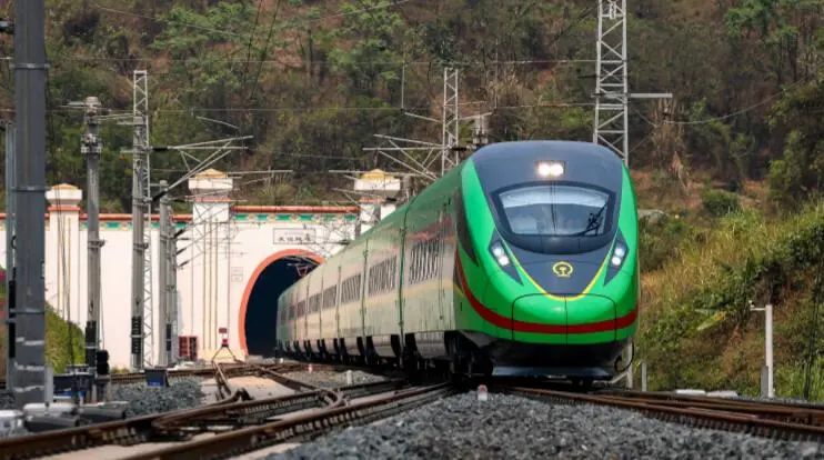 中老铁路国际旅客列车通过友谊隧道。磨憨—磨丁合作区供图