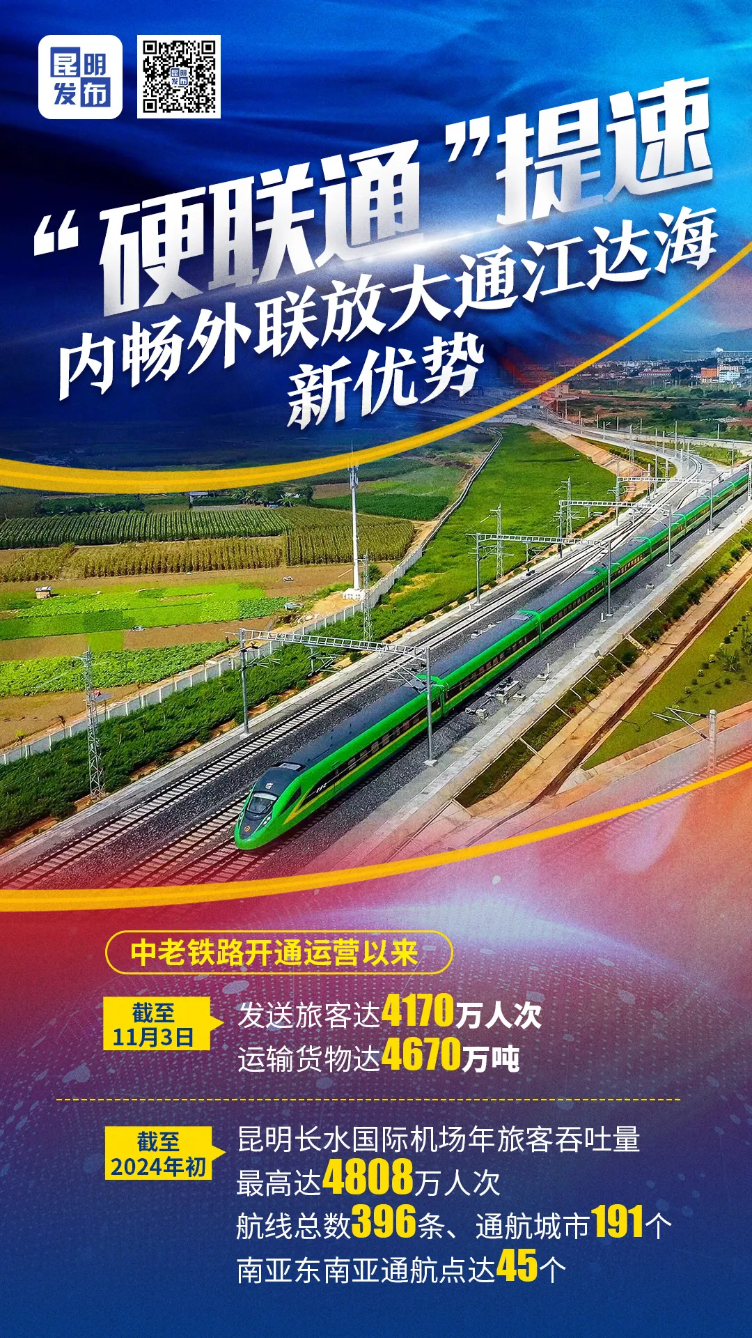 一列列“钢铁驼队”纵横前行,一条条航线架起空中丝路,一条条公路联通内外……随着交通基础设施“硬联通”提速,物流、人流、信息流、资金流、技术流等要素在昆明加速聚集,展现出了春城对外开放的勃勃生机和旺盛活力。