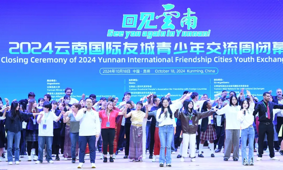 “远隔大海重洋,让我们亲密挽着手,情谊永不相忘,让我们来举杯畅饮,友谊地久天长……”2024年10月,在云南民族大学的礼堂中,来自美国丹佛市等地的10余名青少年与昆明市青少年手拉手,用一曲《友谊地久天长》结束访问昆明的行程。短短几天,他们与昆明的青年朋友一起品美食、做手工、同唱一首歌,昆明的形象在友城青少年心中清晰立体起来,他们说:“昆明真板扎,我们还要来。”