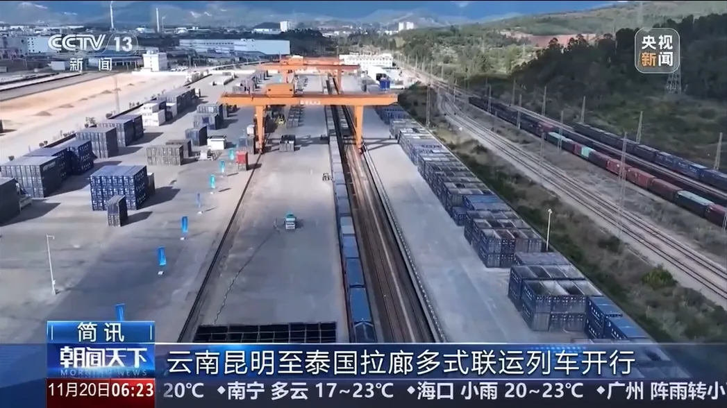{ "title":"央视 | “云南昆明至泰国拉廊多式联运列车开行”上央视啦", "content":`
