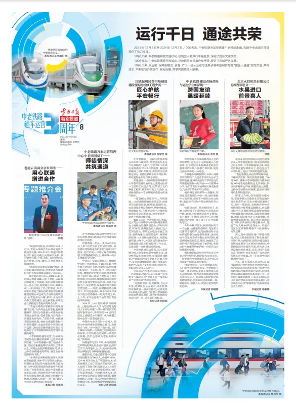 1096天来,从运维、保障到物流、贸易,广大一线从业者与这条承载希望和梦想的“黄金大通道”双向奔赴、共同成长,不断续写开放合作、互利互惠、共享共赢的动人故事。