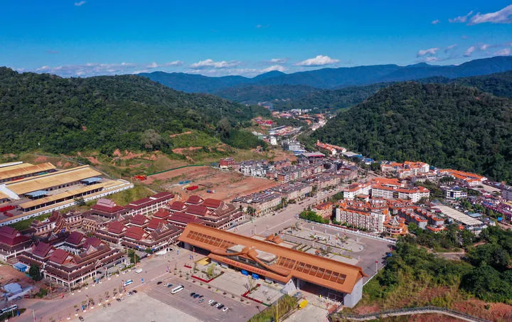中老边境,磨憨—磨丁合作区,一片塔吊林立、车水马龙的繁忙景象,项目加速推进,产业快速集聚。