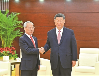 12月20日上午,国家主席习近平在澳门会见刚刚就职的澳门特别行政区行政长官岑浩辉。新华社记者 翟健岚摄