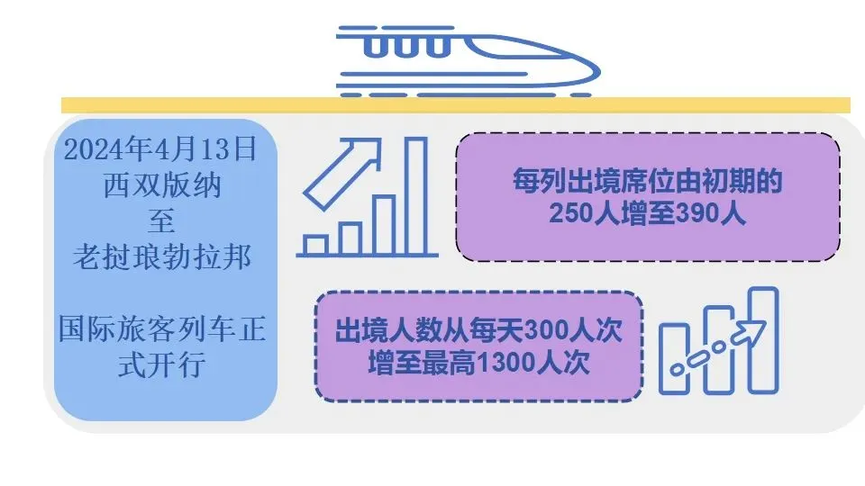 自2023年4月13日中老铁路成功开行国际旅客列车以来,昆明与万象实现了当日通达,标志着中老两国旅游合作迈向新的篇章。今年4月13日,西双版纳至老挝琅勃拉邦的国际旅客列车也正式开行,累计开行国际旅客列车1500多列,每列出境席位由初期的250人增至390人,出境人数从每天300人次增至最高1300人次,而且列车始发正点率达到100%、终到正点率99%,确保了旅客出行安全与便捷。