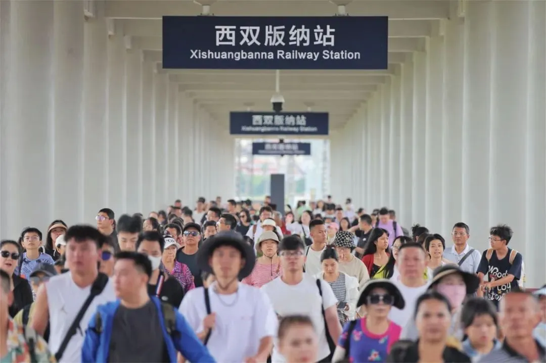 中老铁路不仅促进了跨境游的繁荣,也带动了中国和老挝的国内游火爆。铁路部门精准施策,利用大数据分析技术,灵活调整列车运行图,不仅有效应对了客流变化,还确保了旅客出行的便捷与舒适。单日最高开行旅客列车达98列,发送旅客突破10万人次,其强大的运输能力和市场吸引力令人瞩目。