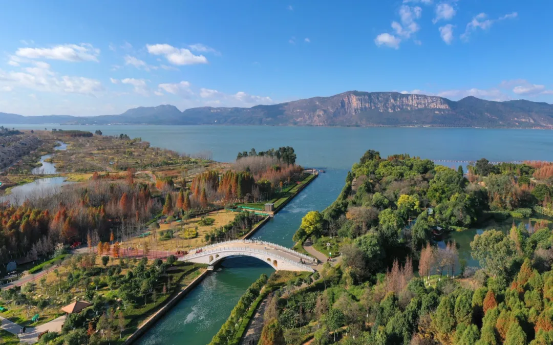 近年来,昆明积极推进滇池湖滨湿地建设,滇池环湖区域已形成平均宽度约200米的闭合生态带,植被覆盖率提升至约81%,湖滨湿地每年可吸收水体中总氮1324吨、总磷74吨,发挥了恢复生态系统、涵养水土、净化水质的作用。出台《云南省滇池“一湖一策”保护治理行动方案(2021—2025年)》《滇池流域国土空间生态修复专项规划(2021—2035)》等,2024年1月1日施行新修订的《云南省滇池保护条例》,规模化开展雨污分流改造,“一河一策”推进入湖河道整治……多年来,昆明在系统规划、控源截污、精准防控等方面持续发力,推动滇池保护治理走向“全域联治”“生态之治”。