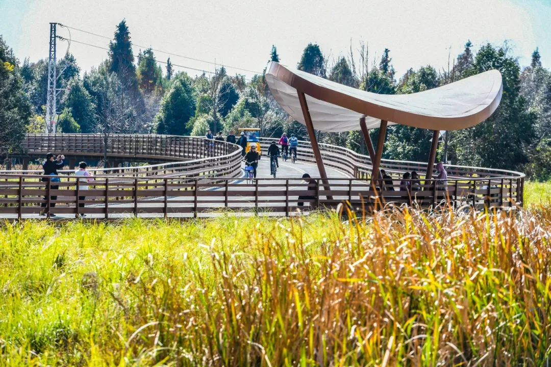 游客在滇池绿道上骑行游玩。记者王俊星 摄
