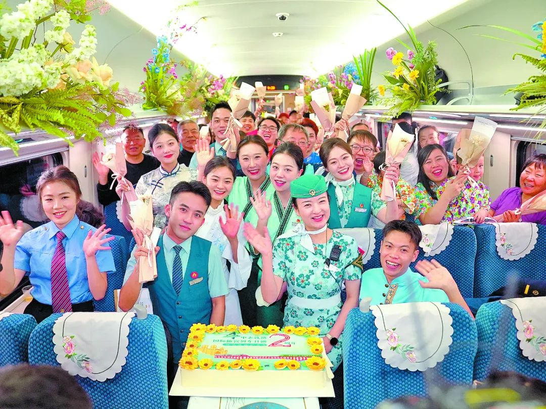 中老铁路国际旅客列车开行两周年列车庆祝活动。图源:云南日报