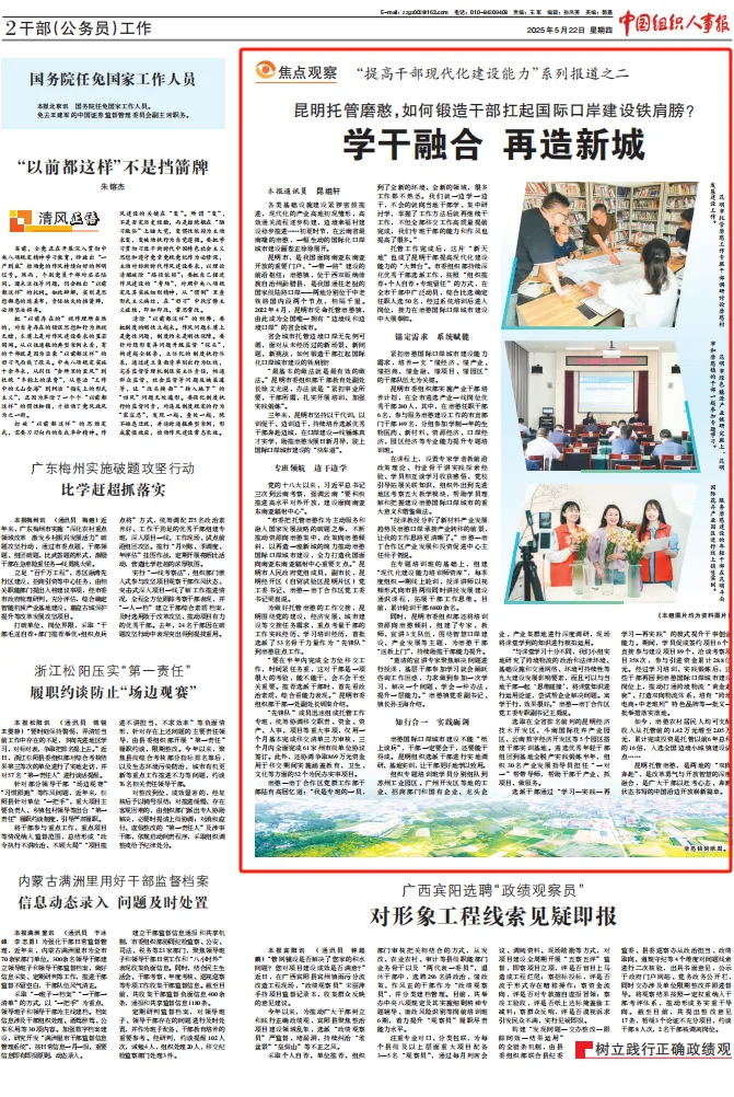 { "title":"聚焦 | 《中国组织人事报》干部版头条刊发《昆明托管磨憨,如何锻造干部扛起国际口岸建设铁肩膀? 学干融合 再造新城》", "content":`