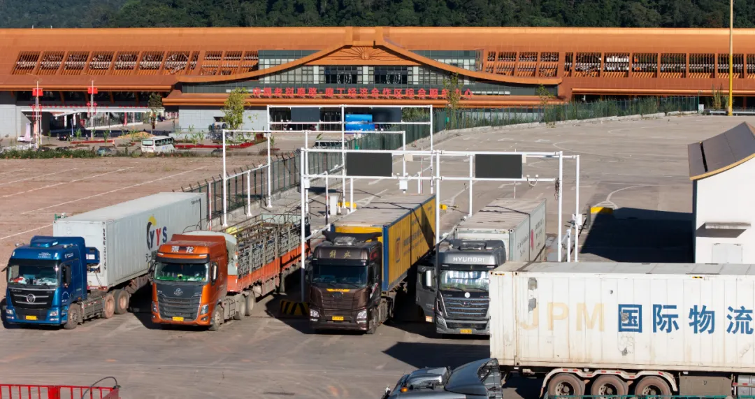 晨光初现,中老边境磨憨口岸的跨境物流通道上,首尾相接的货运车队绵延数里,满载货物的车辆缓缓驶向对面的老挝磨丁;口岸旁的南坡国际产业合作区项目工地上,塔吊林立、机器轰鸣,一栋栋标准化厂房拔地而起……