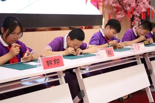 随后,各校依次展示了独具地方特色的非遗项目。银川市金凤区第十八小学的篆刻艺术,带我们穿越千年,解锁篆法、章法、刀法的玄机。