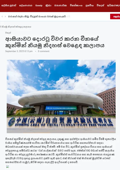 9月4日,老挝《人民报》、斯里兰卡《斯里兰卡通讯社》及《每日太阳报》等多家国际主流媒体集中报道了昆明经开区(自贸试验区昆明片区)的发展实践与显著成效。报道指出,昆明片区凭借中老铁路构建的对外开放“黄金通道”,为区域经贸合作注入了强劲动力,成为中国加快构建新发展格局的生动实践。