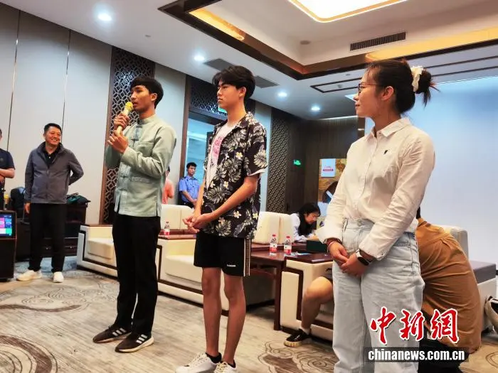普洱学院师生向记者团成员讲述跨国留学故事。图为老挝留学生威来赛。中新网 刘越 摄