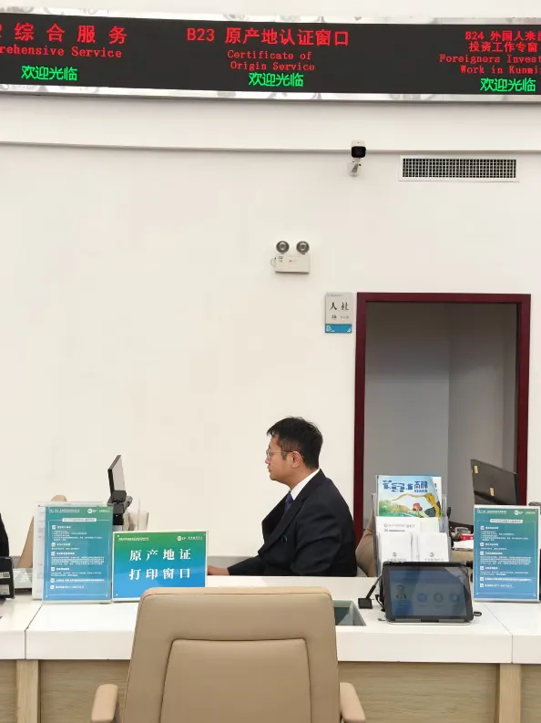 为保障跨区服务落地见效,昆明经开区(自贸试验区昆明片区)充分发挥政务服务领域的丰富经验与资源优势,采用“政策解读+案例剖析+实操演练”的模式,对磨憨—磨丁合作区政务服务中心相关业务负责人员进行实务培训,培训内容覆盖证书签发标准、材料审核要点、网办操作流程等关键环节;同时,全程协助政务服务中心设置非优惠原产地证书业务专窗,明确受理范围、操作流程及协同标准,配套搭建远程实时视频沟通渠道,为非优惠原产地证书专窗提供精准业务指导。