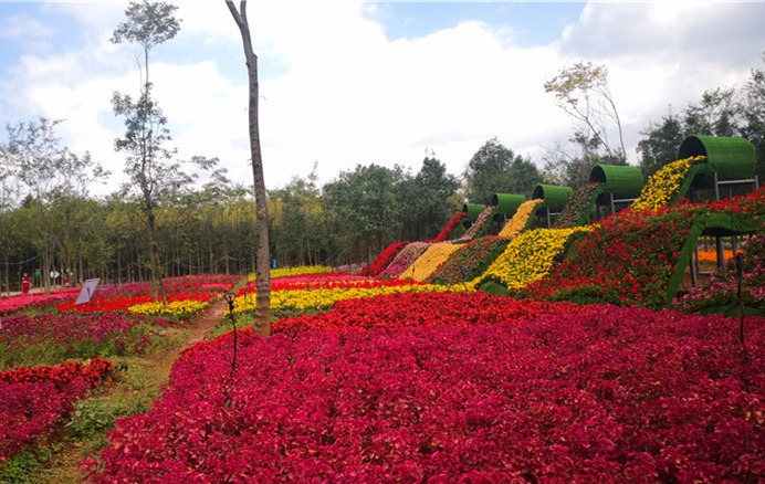 way2:曲靖出发(90km),40分钟车程:曲靖市—小铺(新昆明、玉溪方向)—新昆嵩高速—小街收费站下(直行1公里)—左转进入嵩四公路直行4公里—青龙街—花博园;