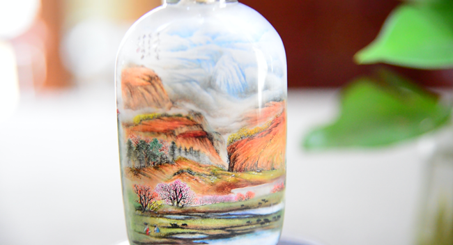 一支特制的毛笔,一个鸭蛋大小的鼻烟壶,孙鸿雁调好颜料端坐案前,右手伸入口小如豆的水晶壶内反手作画,一会功夫,乾坤世界皆显于这寸小之器。《云南守艺人》第八集,看滇派内画创始人孙鸿雁。