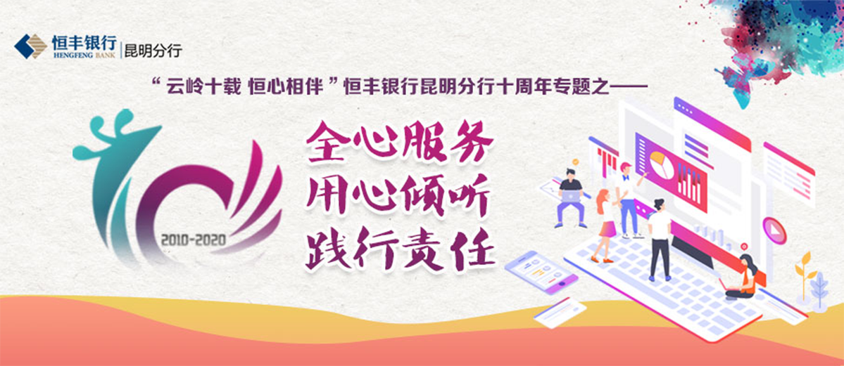 自2010年成立以来,恒丰银行昆明分行坚持以客户为中心、以客户价值为导向、以客户满意为目标、以客户服务战略为基础,牢固树立优质服务的理念,通过变革与创新尝试,不断提高网点综合服务能力,积极适应金融业发展趋势和客户需求,并将创建“星级网点”“千佳单位”作为文明规范服务工作的亮点,加快树立“用心倾听、敏捷响应、创新服务”的恒丰形象,立足打造用心倾听的敏捷银行,发挥好“第一窗口”的效应,为提升