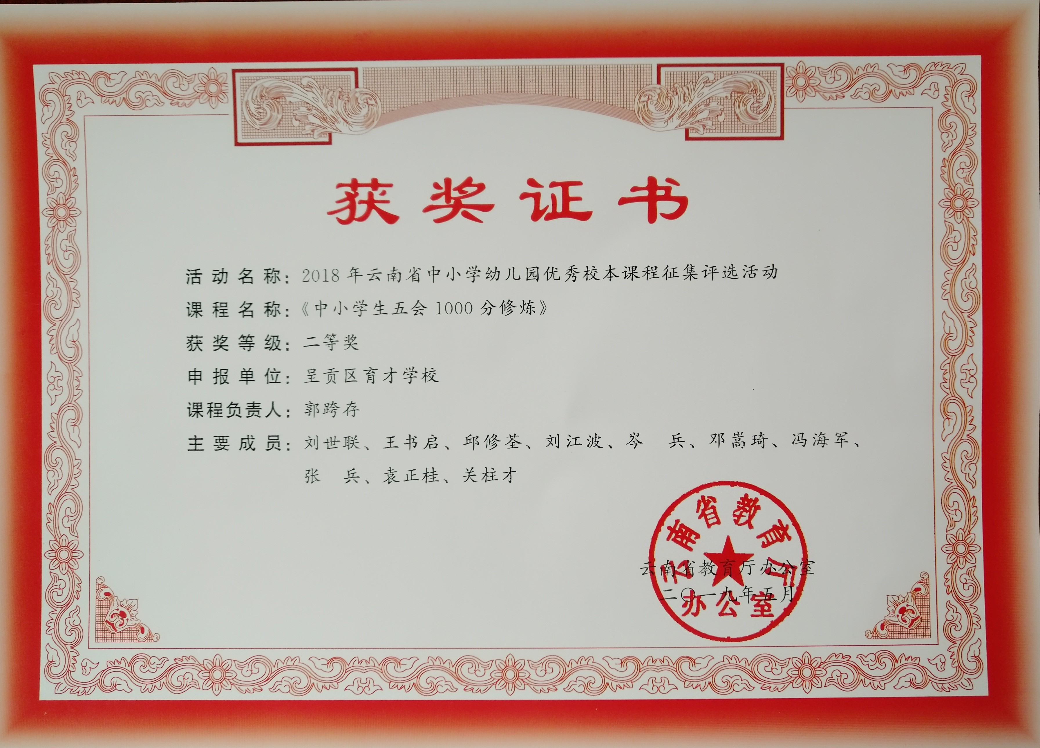 呈贡区育才学校已走过了22年办学历程,连续三次评为云南省民办优秀学校,2019年9月,学校被呈贡区委、政府评为呈贡区名学校。[查看更多]