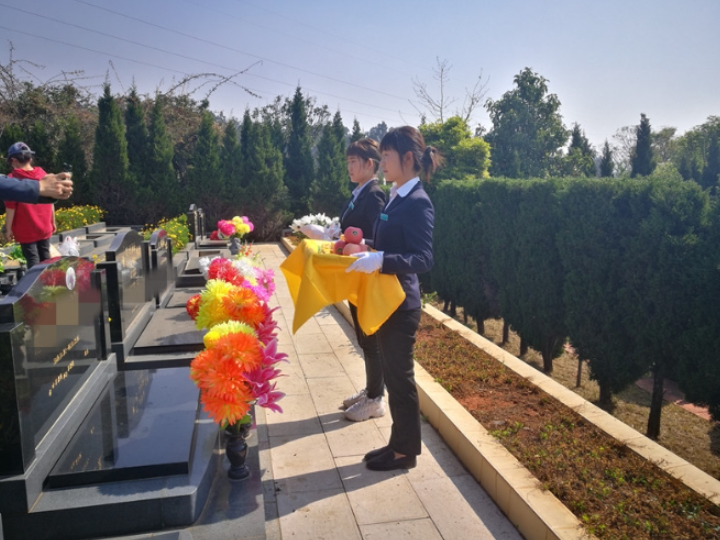 免费网络祭奠服务通道将于2022年3月15日开通,敬请关注昆明市殡仪馆公众号“昆明白事通”或登录昆明市殡仪馆官方网站“www.kmsbyg.com”进行操作。 免费代客祭扫服务将于2022年3月26日至4月5日期间提供,为不能亲临墓区祭扫的您,代行孝道,表达哀思,须提前预约,龙宝山华夏墓园预约服务电话:0871-67354707。