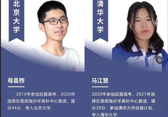 近几年学校高考补习班屡创佳绩,每年都有大量学生考取顶级名校,如,母昌煦同学被北京大学录取,马江慧同学考入清华大学等。
