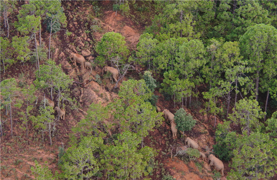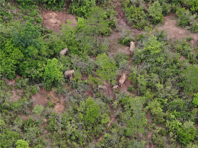 7月6日17时至7月7日17时,象群总体向东南方向移动16.4公里,在新平县扬武镇附近林地内活动。
