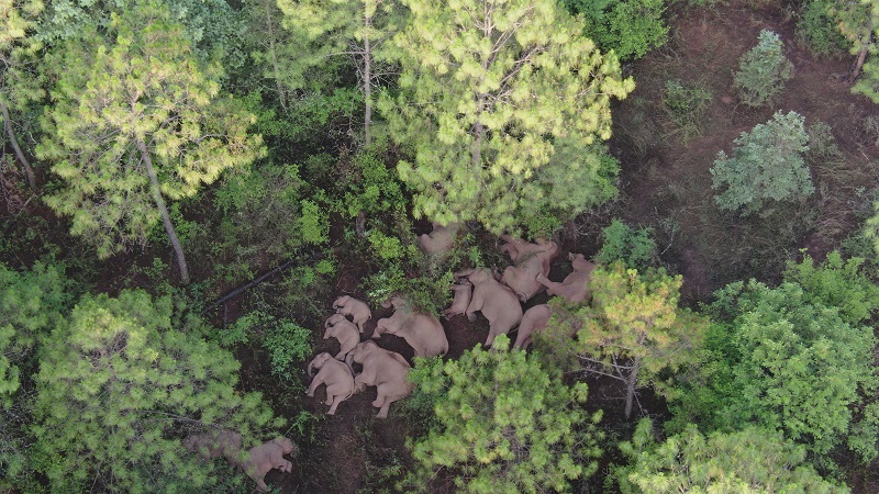 7月12日17时至7月13日17时,象群总体向南移动10.5公里,持续在红河州石屏县龙武镇附近林地内活动,象群在监测范围内,人象平安。