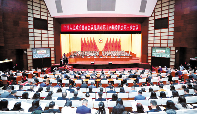 1月19日上午,中国人民政治协商会议昆明市第十四届委员会第三次会议圆满完成各项议程,在昆明会堂胜利闭幕。