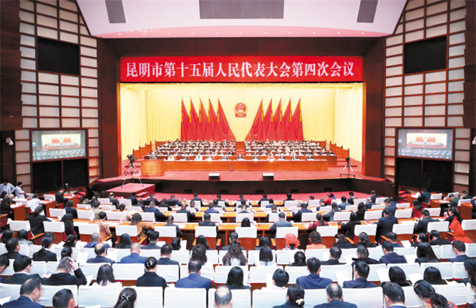 1月17日,昆明市第十五届人民代表大会第四次会议开幕,市长刘佳晨代表市人民政府向大会作政府工作报告。