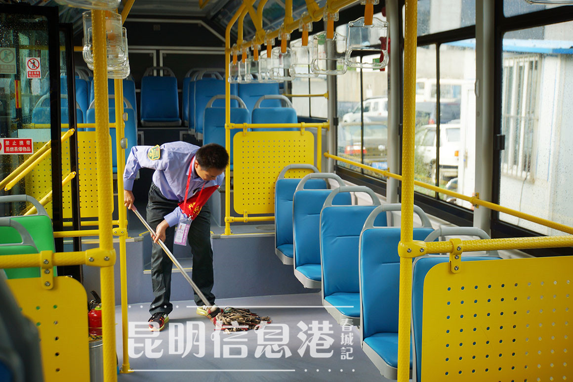 在80万人次进馆逛展的市民中,其中55万人次由昆明公交运送。展会期间,昆明公交投入数名星级车长服务南博会一线,他们身着浅蓝色制服,凭借精湛的驾驶技术,以优质的服务态度,每天超12小时服务着南博会,陈永坤就是其中一员。