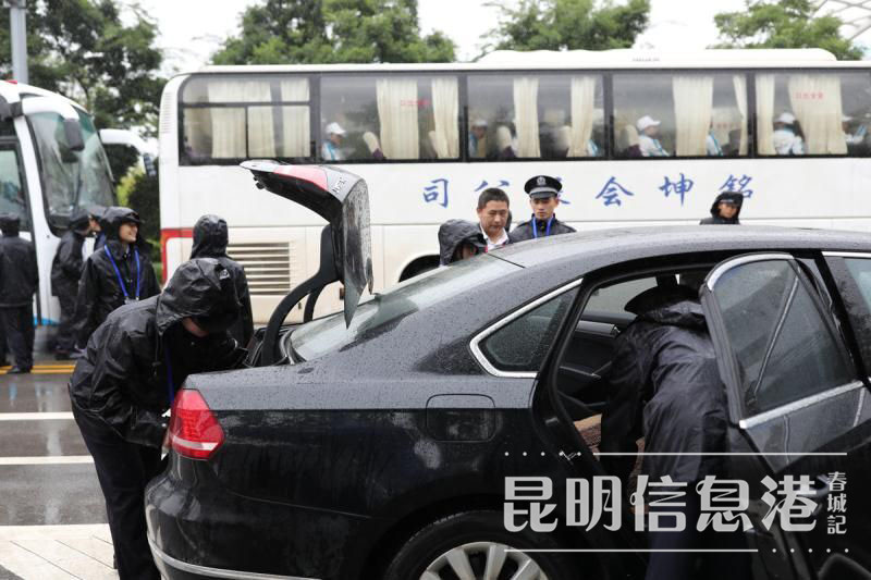 回首14日开幕情景,早晨6点,大雨倾盆。雨水打在地面上、屋顶上,也打在安保警方的身上,安检、巡视却依然有条不紊地进行着,他们栉风沐雨的身影是南博会最别致的“警”色。(昆明市公安局供图)