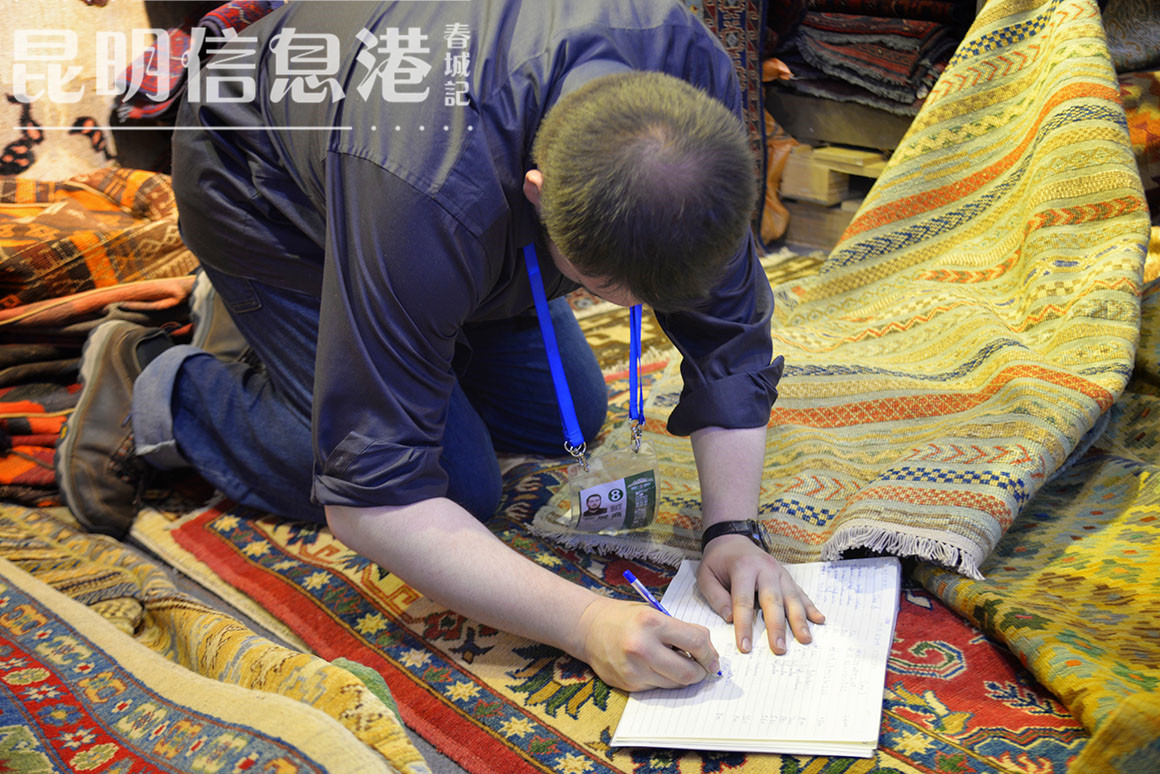 这两天,峰回路转,展区前客源由少变多,Basir Amani忙得不亦乐乎。有时,为上一位顾客打包地毯的同时,他还得开启下一笔交易的洽谈之旅。“今年,我们的布展位置在展馆内靠前,占据了一定的地理优势,因而,这也是我3次参展记录中,销售情况最好的一次。”Basir Amani好不容易得以闲下来接受记者的采访,额头上的汗珠在灯光下格外明显。