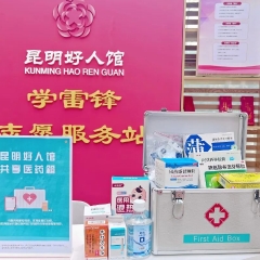 昆明好人馆学雷锋志愿服务站设立共享药箱,并开通服务热线,为有需要的市民提供志愿关爱服务。