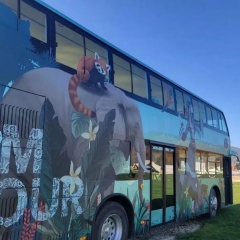2月25日,紧邻滇池大坝10米的公交车场内,停放着两辆以咖啡为主题的双层公交车。